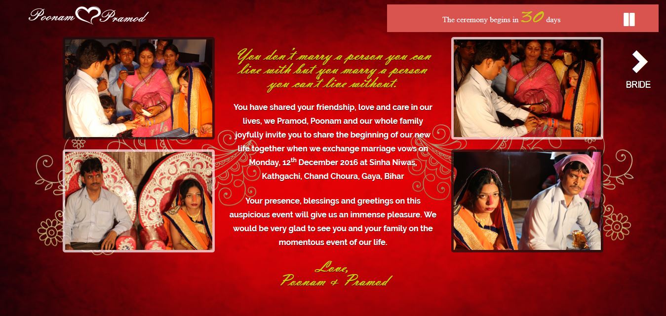Marriage is a process of unison of two individual souls where there is no scope of superiority or inferiority between them. It is a holy bond between a man and a woman to live together for the lifetime.